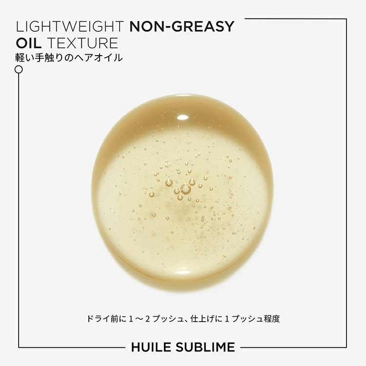 軽い質感で使用できるヘアオイル。ドライヤー前やアイロンなどでのスタイリング前に使用すると髪を守りながらツヤのある髪に仕上げます。