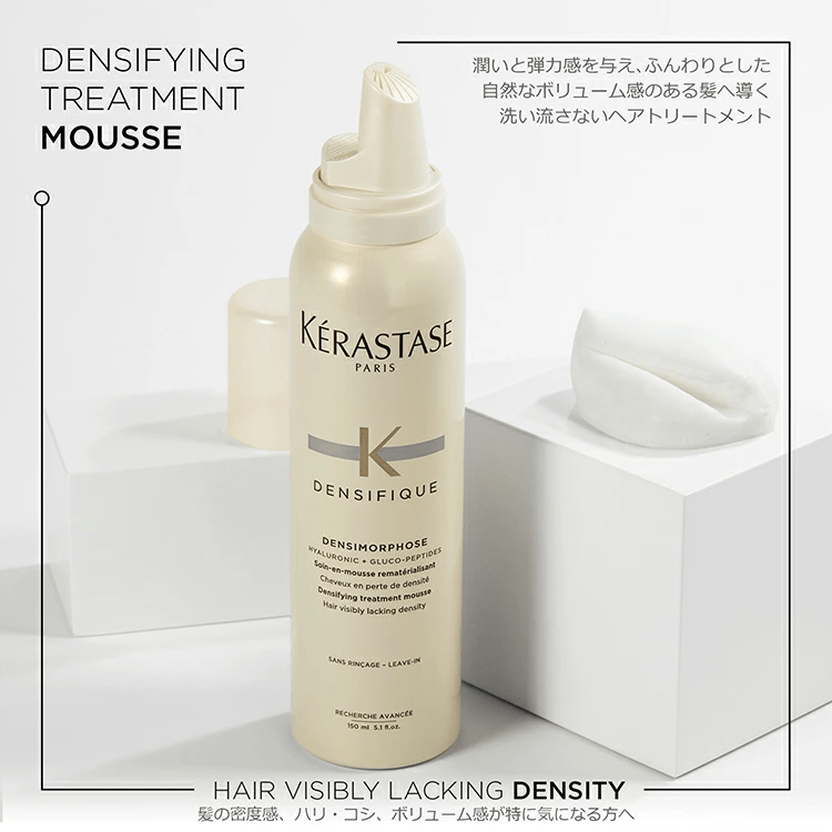 髪にボリューム感・密度感を与えるケラスターゼの最高峰「デンシフィックシリーズ」の、潤いと弾力感を与え、ふんわりとした自然なボリューム感のある髪へ導く洗い流さないヘアトリートメントです。