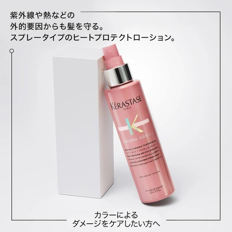 カラー後の髪に潤いを与えながら、紫外線、湿度、熱などの 外的要因から髪をいたわるスプレータイプのヒートプロテクトローション。