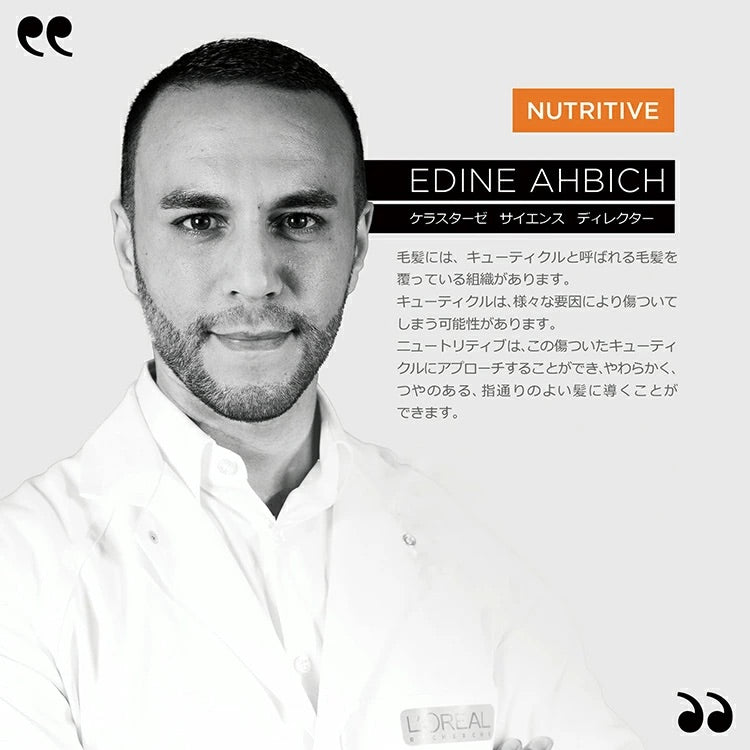 ケラスターゼ初。毛先特有のパサつきに着目した毛先用ヘアオイル。ダメージを受けた毛先を補修し、枝毛や切れ毛を抑える。ビタミン(トコフェロール、健やか成分)を配合した処方により、髪にツヤを与えます。毛先まで指通り良まとまる髪に仕上がります。パサつき・ゴワつき髪ケアのニュートリティブシリーズの洗い流さないヘアトリートメント。