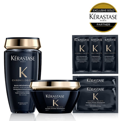 ケラスターゼ最高峰シリーズ「クロノロジスト」の試供品付セットを数量限定販売!!全方位ケアで、時を超えてさらなる美の高みへ。健康的な印象の美髪に導くデイリーケアセット。