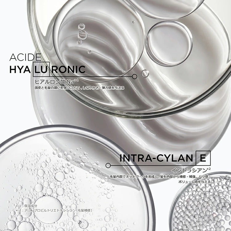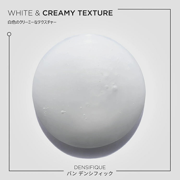 配合成分 ●システム デンシファイング ーヒアルロン酸Na(保湿成分)サフラワーグルコシド(コンディショニング成分) ーセラミド*(毛髪補修成分)●カチオニックポリマー -ポリクオタニウム-30-(ハリ・コシ成分)*:オレアミドオクタデカンジオール