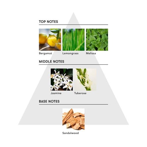 • Base Note: サンダルウッド (ざわめきを静め、心と空間をそっと穏やかなバリアで包み込みます)